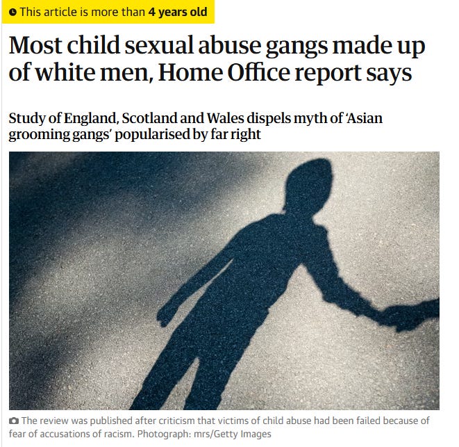 Despite this, the headline for the home office report was that white males were mostly responsible for CSA. A dishonest conclusion designed to muddy the waters.
