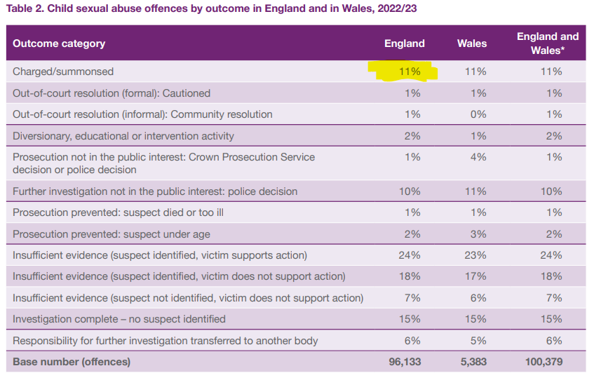 The figures below show that a lot of these reported offences have never been proven, or even judged worthy of investigation.,
